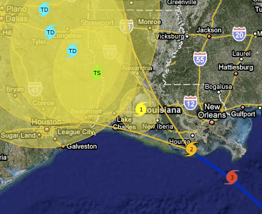 As of 10:40AM, it still isn’t raining in Alexandria (though we’ve had a few sprinkles), but the wind is definitely picking up. Gustav made landfall as a Category 2– obviously not as intense as Katrina or Rita.
