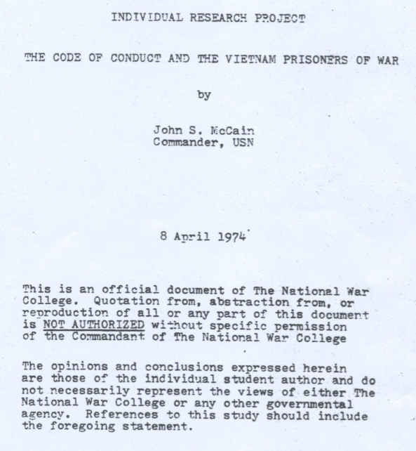 After all, Senator McCain “allegedly” (I use the word facetiously) typed up an essay in 1974 for the National War College.