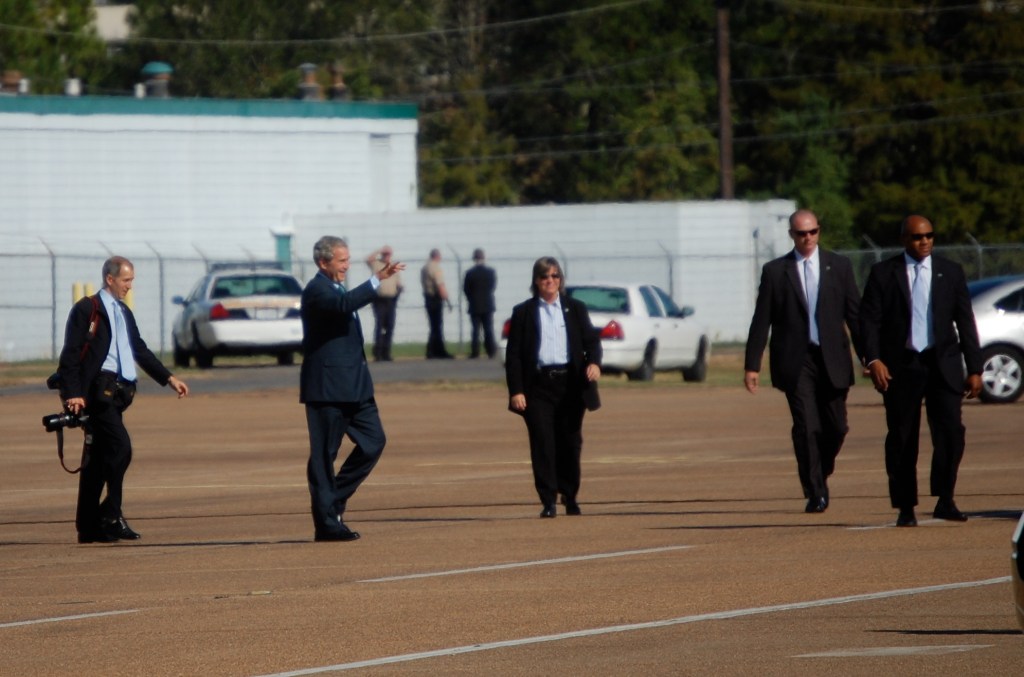 President Bush ambles his way back to Air Force One. (Photo credit: Daniel T. Smith)