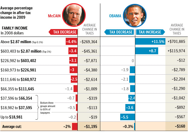 Ms. Jardon, practically all of what you’re saying about Senator Obama’s tax plan is a lie. Again, with all due respect, you have fundamentally misrepresented his tax plan and the intentions behind his plan. First of all, despite what you claim, there IS, in fact, an actual and substantial cut “figured in” for people making less than $250,000. From the Boston Globe: