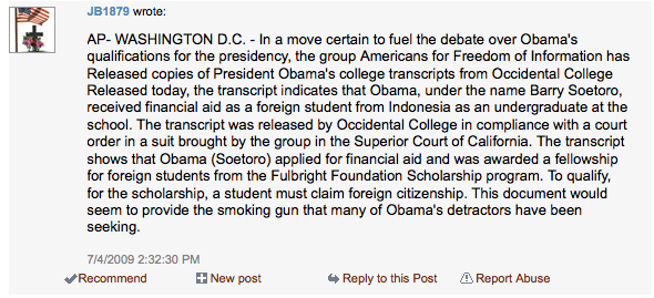 Blatantly false “Associated Press report” posted as a comment on both stories about local Teabag Parties: