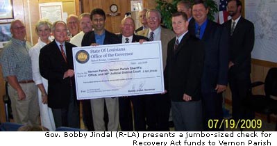 He presented an over-sized stimulus check to Vernon Parish. From Think Progress: