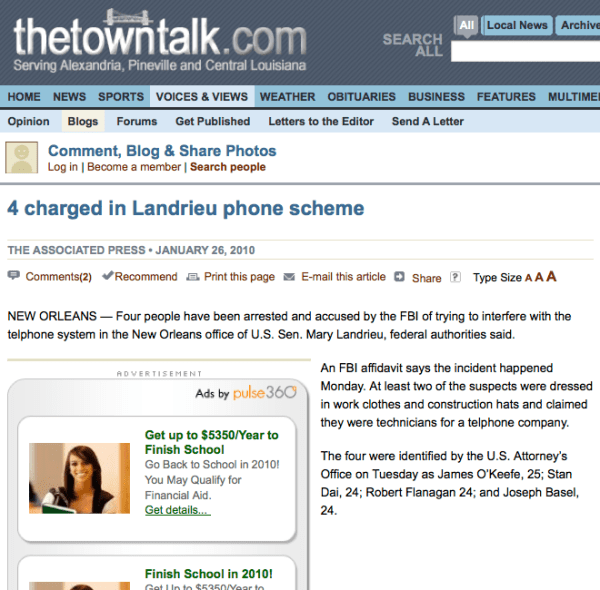 Imagine if the story were, instead: ACORN Employee and Son of Assistant (Democratic) US Attorney Arrested for Attempting to Wiretap Senator Vitter’s New Orleans Office.