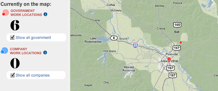 And after a year and a half investigation, even Alexandria, Louisiana popped up on their radar. The Post claims there are six “government work locations” in Central Louisiana that are a part of the so-called “Top Secret America,” but to be sure, they don’t reveal who these agencies are or how many people they employ.