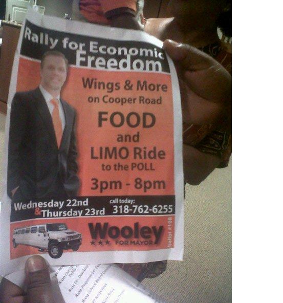 Bryan Wooley is currently running as a Republican for Mayor of Shreveport. And his supporters hatched a brilliant way to get out the vote: By offering free chicken wings and a limo ride to the poll!