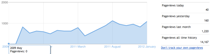 When I launched the WordPress version, the hit count went down to zero, yet the Blogspot site, because it remains, still, to this day, continues to receive hits. Unfortunately, though, Blogger’s hit counter software had changed in May of 2009, and it’s impossible to precisely know how many visitors the site had received between March of 2007 and May of 2009, So, in fairness and despite the fact that the site likely continued to more receive hits during the first weeks and months before it was migrated, there’s still an easy enough way to extrapolate a total number. Thankfully, Blogger still provides the most current unique visitor hit counts, beginning in June 2009 and ending in January 2012.