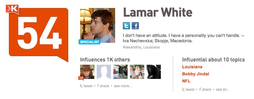 CenLamar, however, is the highest-ranked social media “specialist” in Central Louisiana: