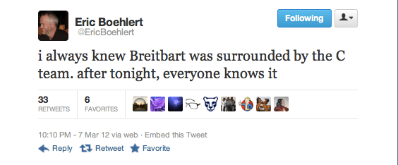 Almost immediately after news broke about the sudden death of conservative provocateur Andrew Breitbart, I started receiving messages that he’d been “assassinated,” that this was all a part of some massive plot involving a cover-up of videos from President Obama’s college years. Normally, I wouldn’t pay any attention to this brand of absurd conspiracy, but I have a special connection to the story. As many of you know, I was the last person Breitbart publicly tweeted; less than an hour after he wrote me, he collapsed and died of a heart attack.