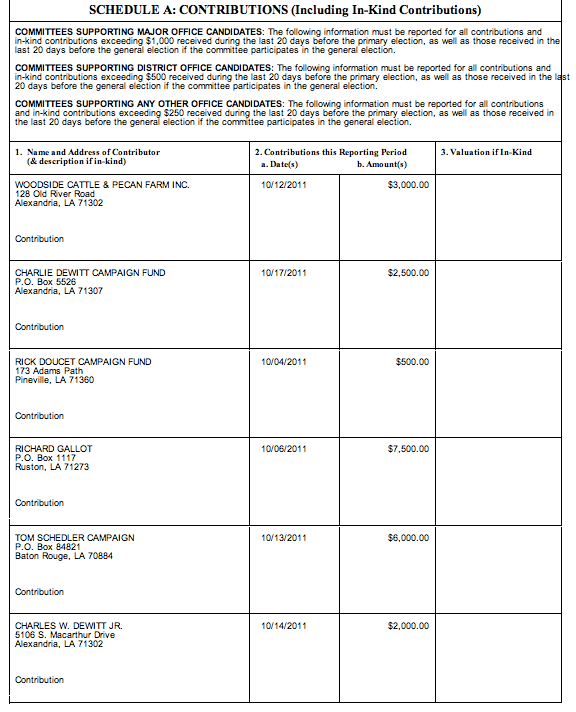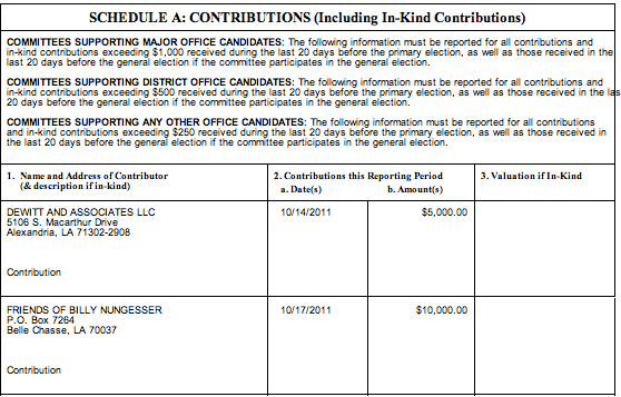 ROC also lists $9,500 in contributions from Dewitt on October of 2011, right next to big checks from Tom Schedler, Rick Gallot, and Billy Nungesser.