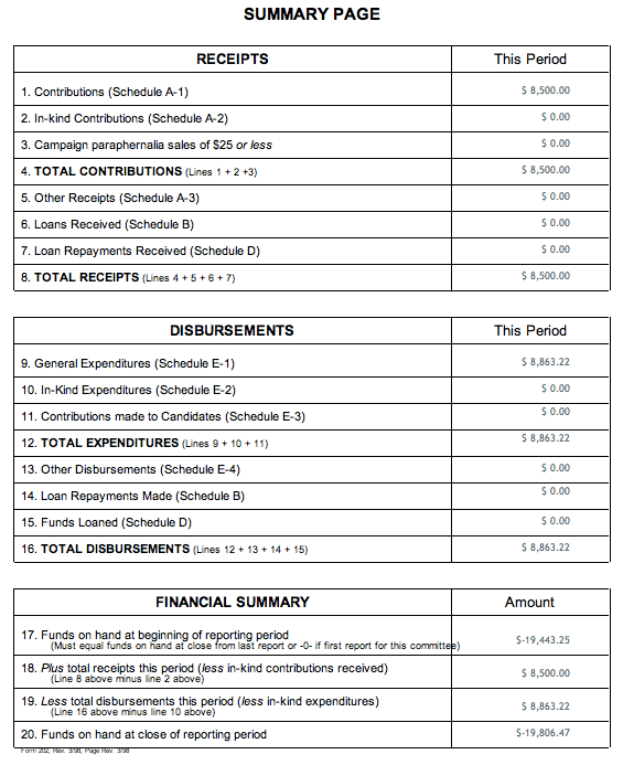 Despite the tens of thousands of dollars ROC has raised during the last two years, according to its most recent disclosure report, which was filed on February 15, 2012 and signed by its new Chairman Michael Caffery and its Treasurer Von Jennings, ROC ended 2011 — stunningly– with a NEGATIVE balance of $19,806.47. (To be clear, ROC should still be flush with cash, if the reporting on their overall contributions is accurate, and this should raise even more suspicion).