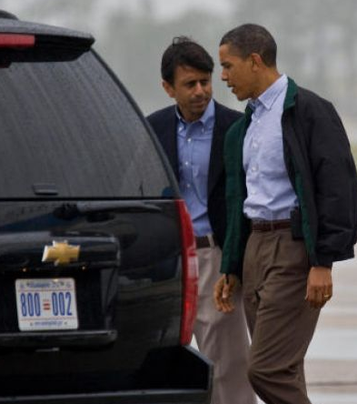 Governor of Louisiana Bobby Jindal (R) and President Barack Obama (D)