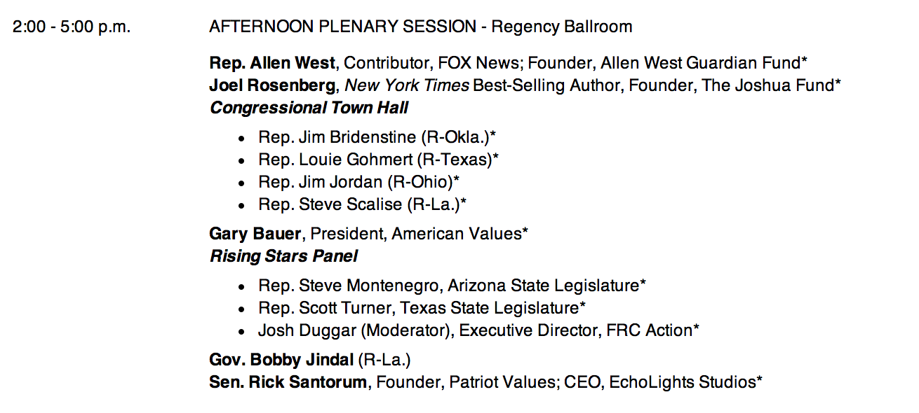 The coalition letter urges public officials invited to speak at FRC/AFA event “to not lend the prestige of [their] office to the summit,” which begins Friday. The public officials invited to speak include Gov. Bobby Jindal, Sens. Rand Paul, Marco Rubio, Ted Cruz, and Tim Scott, and Reps. Paul Ryan, Randy Forbes, Michele Bachmann, Jim Bridenstine, Louie Gohmert, Jim Jordan, Steve King, Steve Scalise, and Scott Turner.