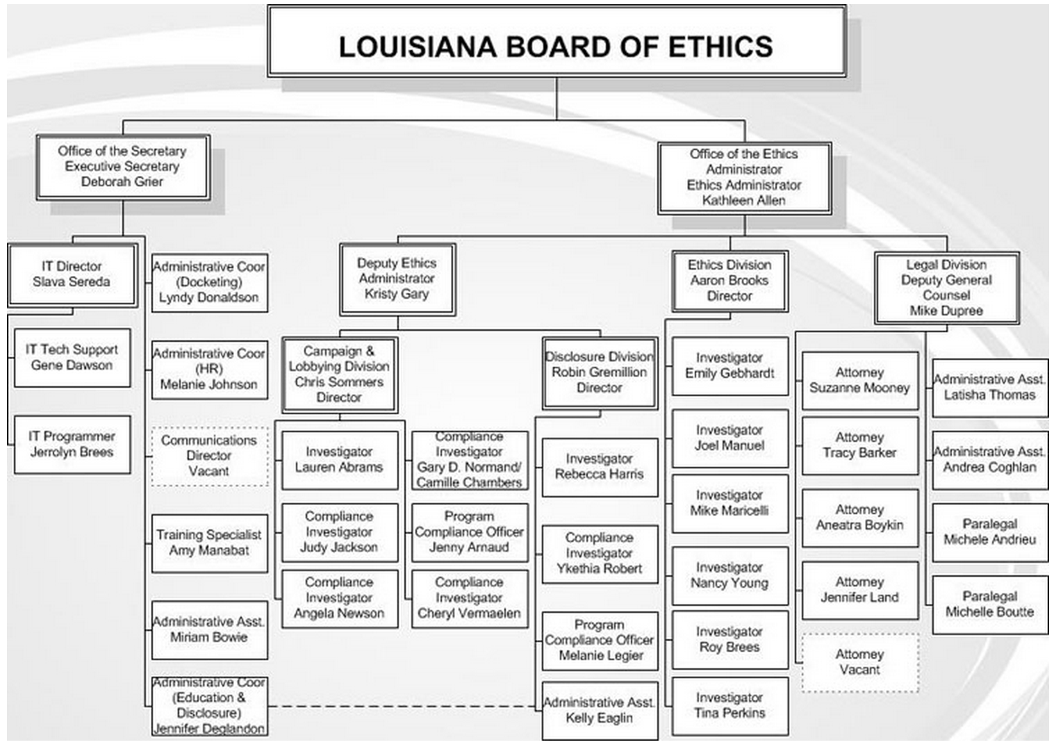 DISCLAIMER: The contents of this message are for information purposes only and does not constitute an advisory opinion of the Board of Ethics. If you would like to request an advisory opinion from the Louisiana Board of Ethics, please refer to http://www.ethics.state.la.us/BoardProcedures.aspx for information about submitting a request for an advisory opinion.