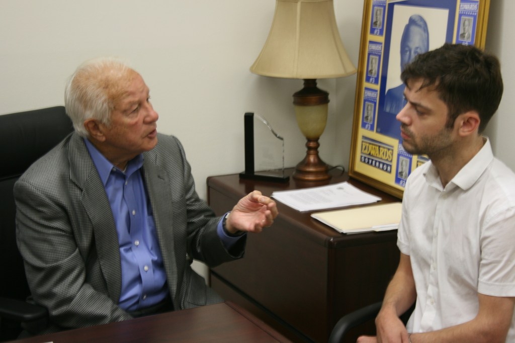 After exchanging pleasantries with Trina, Governor Edwards summoned me into a sparse back office. While my friends set up the video equipment, I took a seat in front of his desk. I reminded him of my Central Louisiana connections and how, for many in Central Louisiana, he was still a somewhat of a hometown hero.