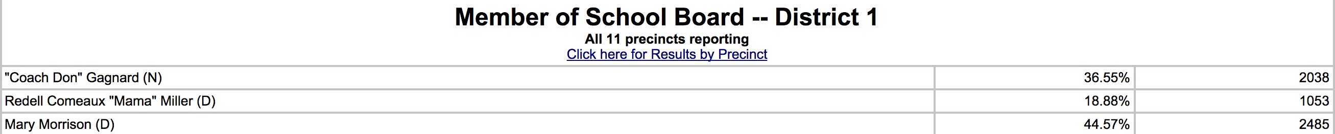 That brings me to “Coach” Donald Gagnard, the District One candidate for Lafayette Parish School Board. After receiving more than 36.5% of the primary vote, Coach Gagnard, who just recently changed his party affiliation from Republican to Independent, sailed into a run-off against Mary Morrison, an African-American Democrat. Screen Shot 2014-11-12 at 12.00.41 AM
