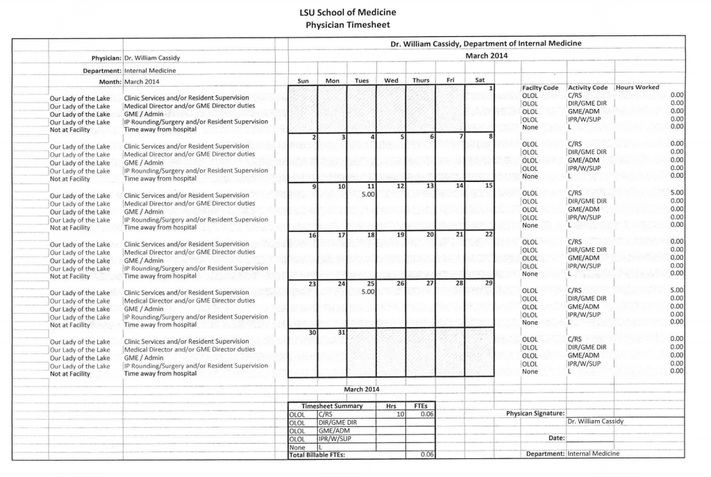 But as his March timesheet indicates and as Pirtle’s posts on Facebook seem to corroborate, Congressman Cassidy appears to have charged LSU for meetings he held during the day from his Congressional office on Capitol Hill, and not, as initially reported, “in area medical facilities after the day’s congressional work ended.”