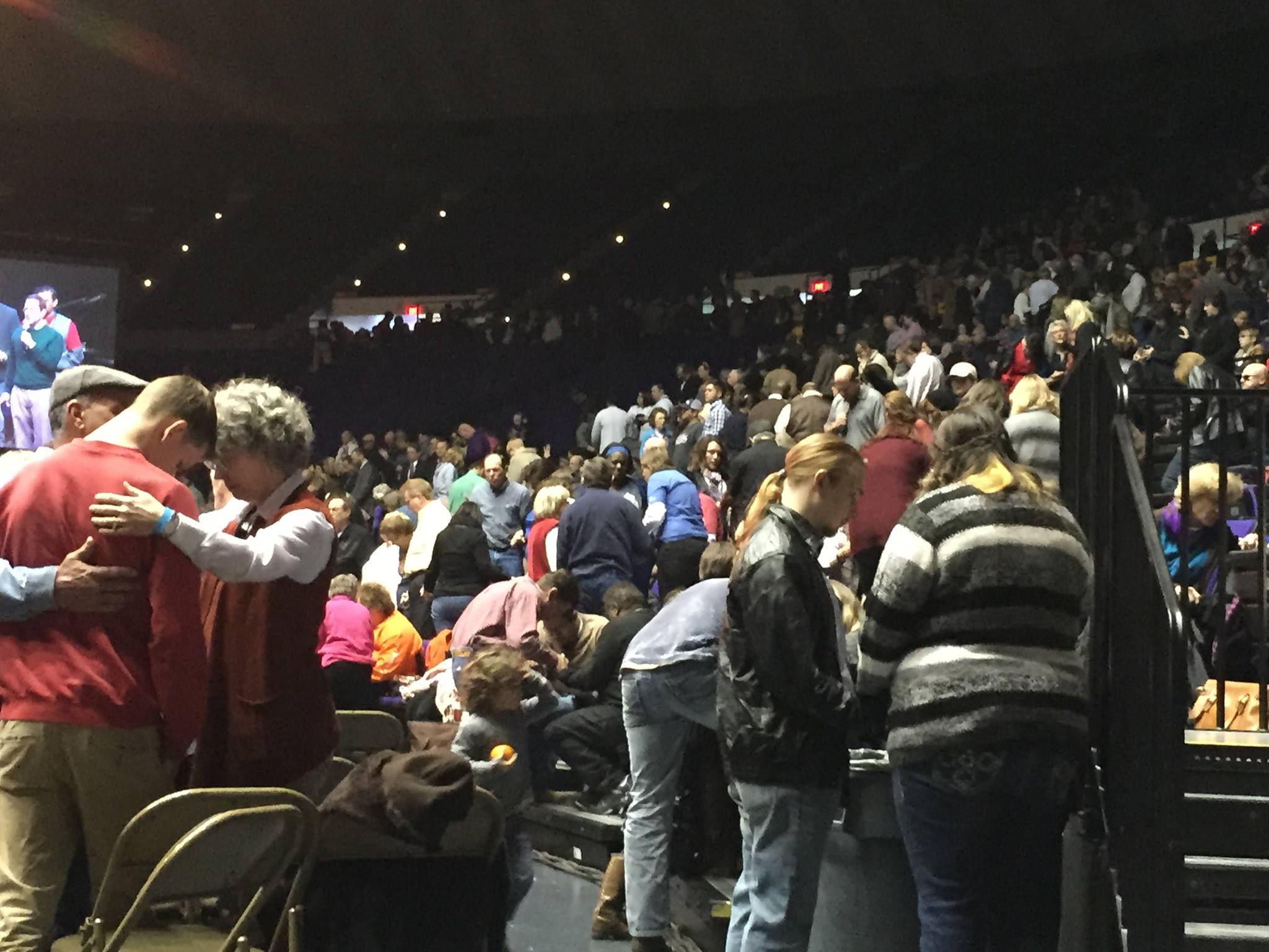 I readily acknowledge: I am cynical about events like these. I have a degree in religious studies from Rice University, and I spent four years studying, observing, and participating in all sorts of religious rituals and ceremonies. The relatively recent phenomenon of mega-church services held inside of impersonal, generic arenas- liminal spaces that are retrofitted to resemble enormous television studios- has always seemed, to me, inauthentic and absurdly theatrical. But I also recognize that the religious experience is less about the space and more about the service- the music, the prayer, the sermon, and the fellowship.