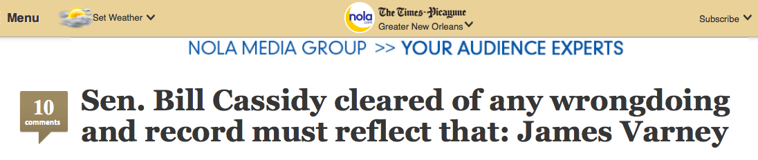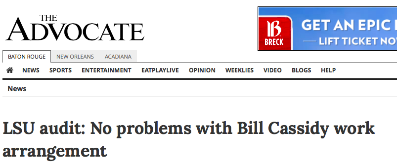 From the very beginning- the moment that public records surfaced revealing that Bill Cassidy claimed to be working in Baton Rouge on the same days he was voting in DC and that he failed to submit 75% of his time sheets (despite the explicit demand that he account for all of his work)- the Louisiana media has been absolutely, shamefully, epically derelict in its duties. They refused to ask the tough questions. They refused to hold him or LSU accountable. Two days ago, LSU released a report that it conducted itself; they called it an audit, and they implied it cleared Dr. Cassidy.