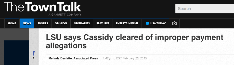 I’d heard this before from other reporters: CNN and NBC News had allegedly passed on it, and so did The Advocate. Yet once Jason Brad Berry and I put the story and the documents online, the very publications that had once dismissed it as a non-issue were suddenly interested. It became a major part of the final two weeks of the Senate campaign between Cassidy and Mary Landrieu. Ethics complaints were filed locally and nationally. LSU was forced to launch its own internal investigation. And it even earned me a profile in my hometown newspaper, The Town Talk, and a handful of interviews on the radio.