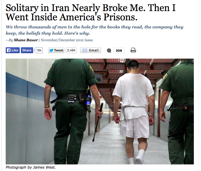 In 2012, Bauer published an extraordinary story for Mother Jones titled, “Solitary in Iran Nearly Broke Me. Then I Went Inside America’s Prisons.”