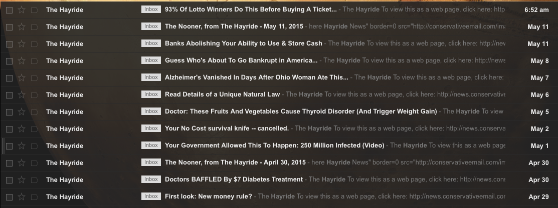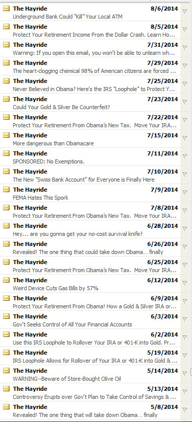Here is only a small sampling of the e-mails that subscribers to The Hayride receive almost every single day: